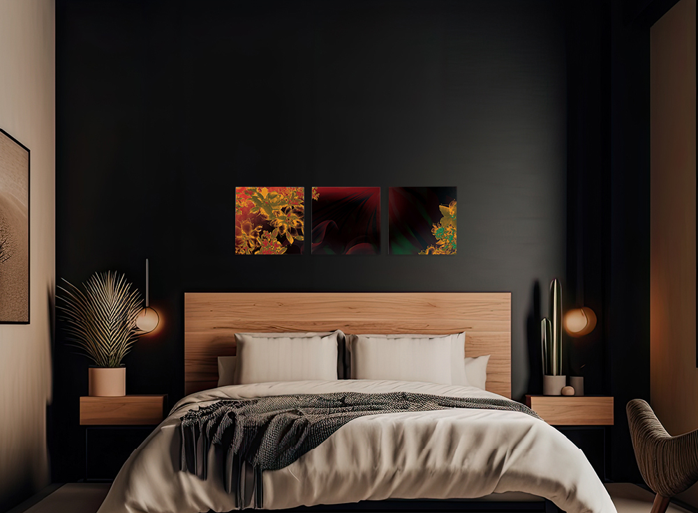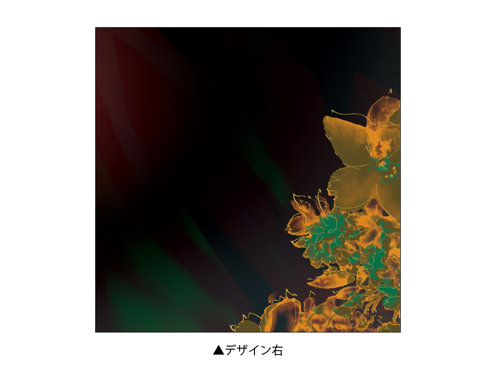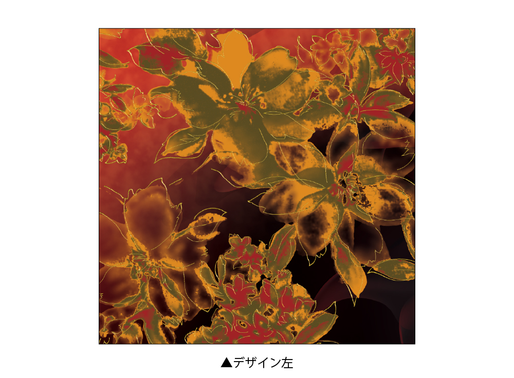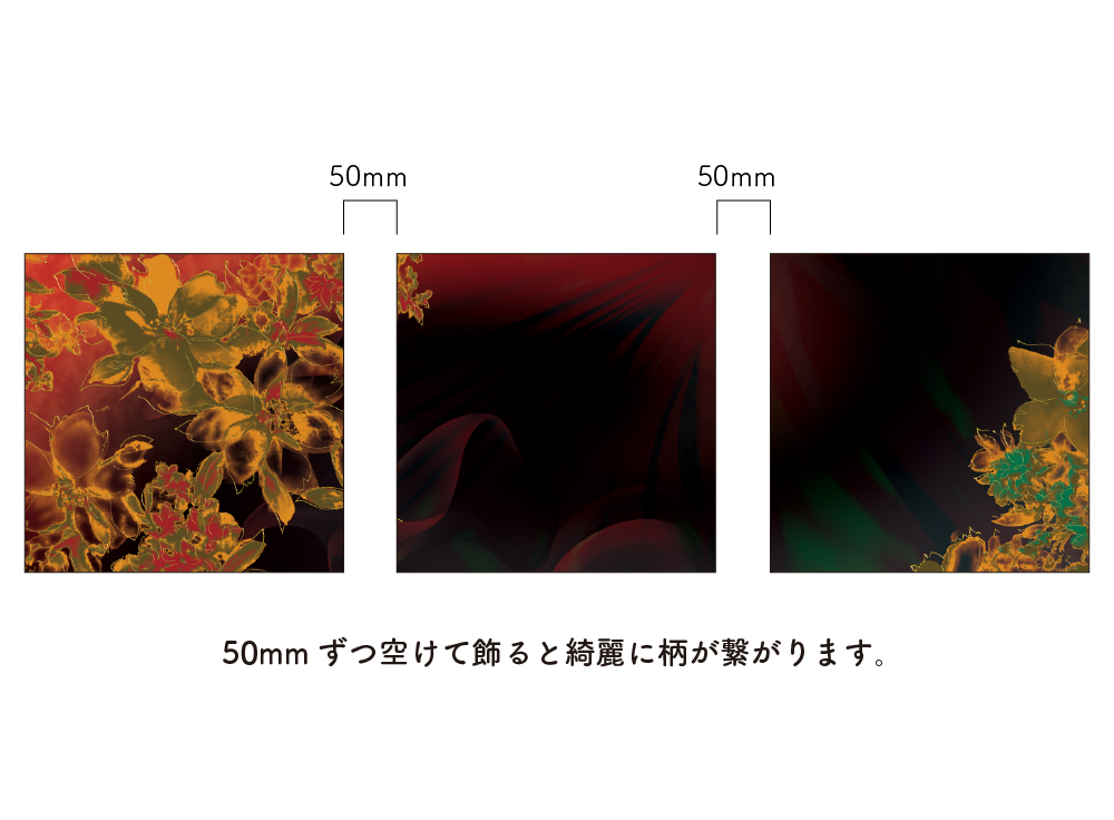 赤と黒を基調とした妖艶な華が咲き乱れる、幻想的な世界が広がるクロスボード。赤と黒のコントラストが生み出す鮮烈なイメージはモダンなインテリアに最適で、空間に深みとエレガンスをプラスしてくれます。