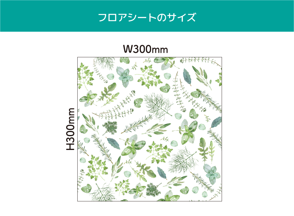 ボタニカルな水彩の葉っぱが優しく描かれたフロアシートです。自然の豊かさと生命力が溢れる、繊細でリアルな葉の表現。優しい水彩のカラーと滲み。ハーブに包まれるような癒しのあるインテリア。ナチュラルな空間にぴったりな一枚です。