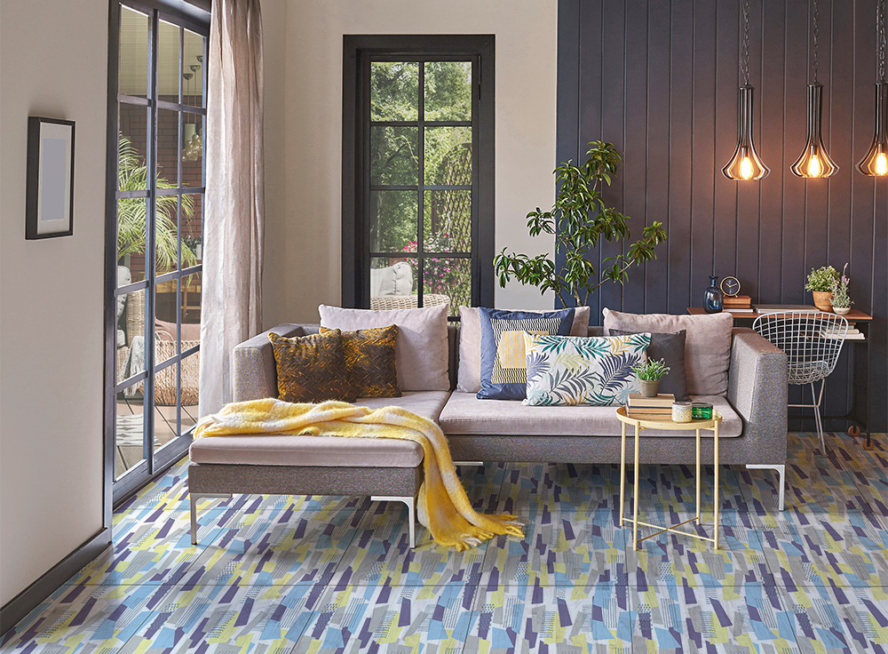 傷が付きにくい素材で滑り止めの加工付き。凹凸のない床でしたら施工が可能です。