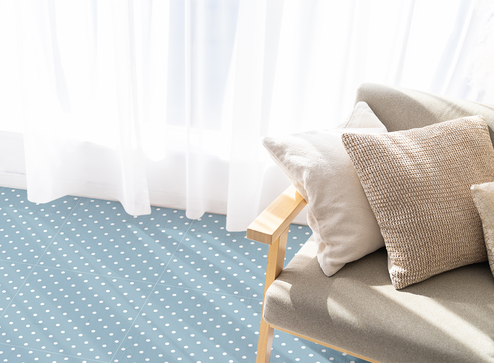 傷が付きにくい素材で滑り止めの加工付き。凹凸のない床でしたら施工が可能です。